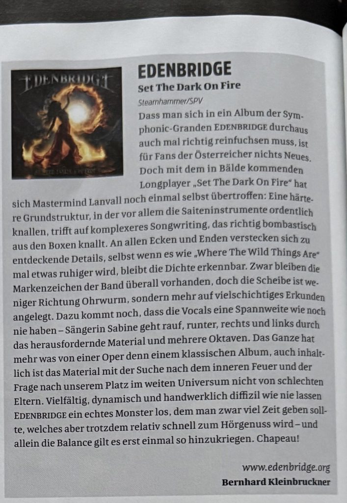 EDENBRIDGE – SET THE DARK ON FIRE